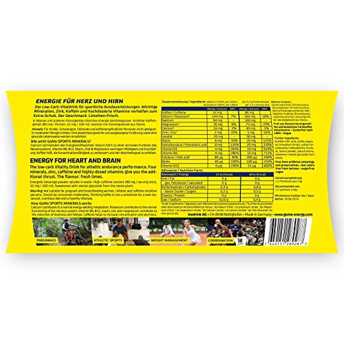 Specification: GoMo ENERGY® Isotonisches Sportgetränk │ 80 mg Koffein, Vitamine + Mineralienmix │ hochdosiertes Vitamin B1+B6, +B12 + Biotin + Folsäure│ Einzelportion für Iso Drink │ SPORTS MINERALS 30 Stück
