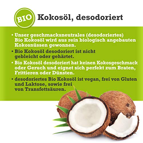 Desodoriertes Kokosöl hat keinen Kokosgeschmack oder Geruch und eignet sich perfekt zum Braten, Frittieren oder Dünsten