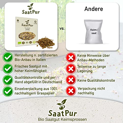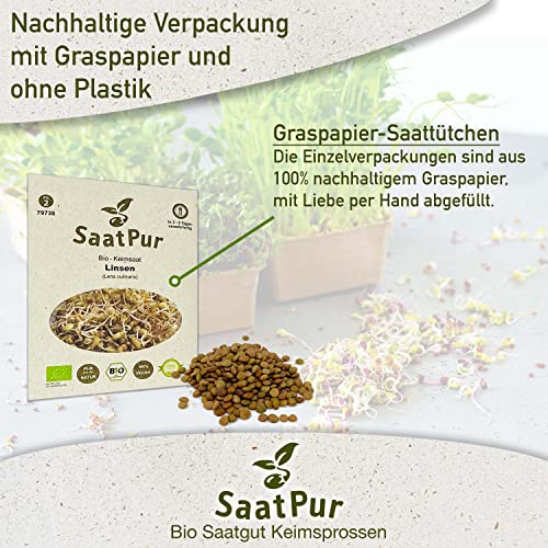 Specification: Linsen (Grün) BIO Keimsprossen von SaatPur – Sprossen Keimsaat Microgreen – 75g