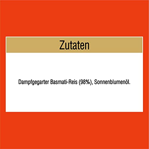 Zutaten: Dampfgegarter Basmati-Reis (98%), Sonnenblumenöl.