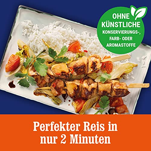Zubereitung: Ben’s Original Express Reis kann einfach und bequem in 2 Minuten in der Mikrowelle oder mit Wasser in 3 Minuten in der Pfanne erhitzt werden
