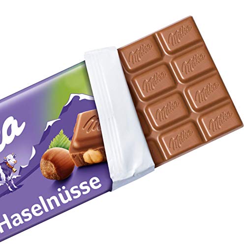 Die Milka Ganze Haselnüsse Großpackung enthält praktische 100g-Tafeln, die sich nach dem Öffnen wieder verschließen lassen