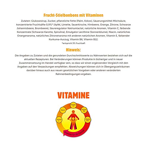 Der bunte Lollipop Mix in der Großpackung besteht aus köstlichem Fruchtsaft und ist angereichert mit wertvollen Vitaminen – ein rundum leckerer, frischer Lutschspaß für lang anhaltenden Genuss